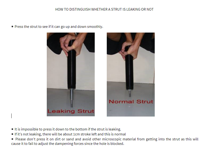 Another reason is that the damping adjustment knob was overly turned clockwise – this is the hardest setting (Maximum Rebound). Our recommended damping adjustment is18 clicks counterclockwise, this is the mid-range setting and is the best starting point for adjusting your dampers. Turning past the last setting will damage the shock absorber.